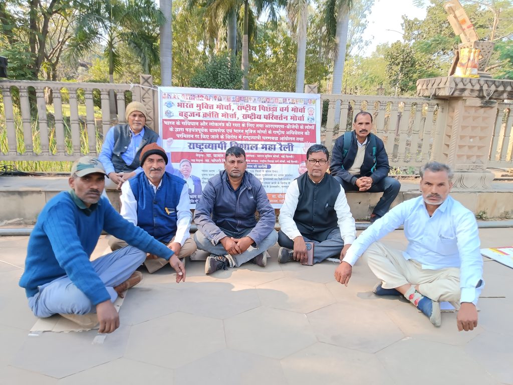 कटनी।भारत मुक्ति मोर्चा, राष्ट्रीय पिछड़ा वर्ग मोर्चा सहित सहयोगी संगठनों के आह्वान पर गुरुवार को कटनी कलेक्टर कार्यालय के बाहर धरना-प्रदर्शन किया गया। यह प्रदर्शन बामसेफ एवं भारत मुक्ति मोर्चा के राष्ट्रीय अधिवेशन की अनुमति कथित रूप से षड्यंत्रपूर्वक रद्द किए जाने के विरोध में आयोजित किया गया।